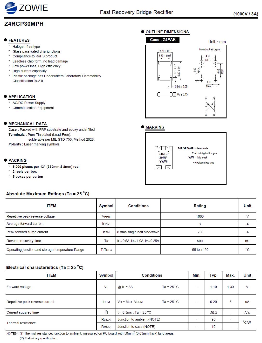 4. Z4RGP30MAPH (3A/1000V/Trr=250ns)